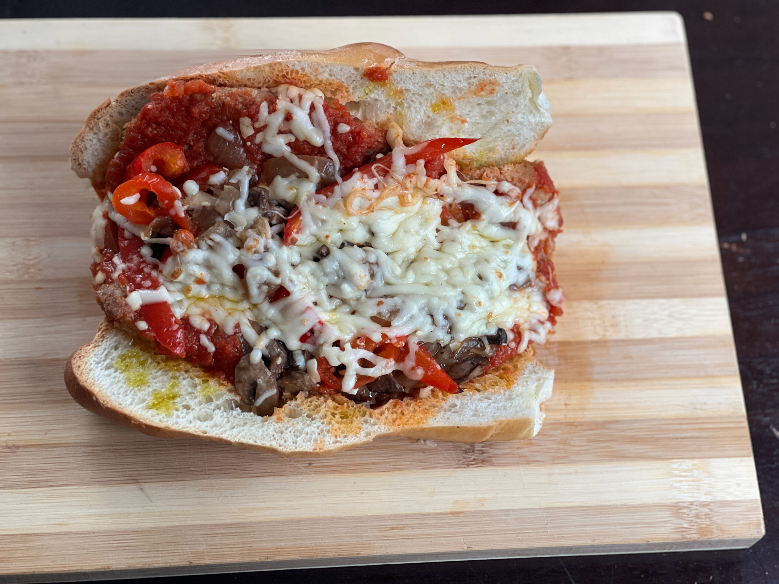 Choose: sweet peppers, mushrooms, caramelized onions, sundried, cherry or vine tomatoes, spinach, arugula, black olives, hot peppers, artichoke, red onion